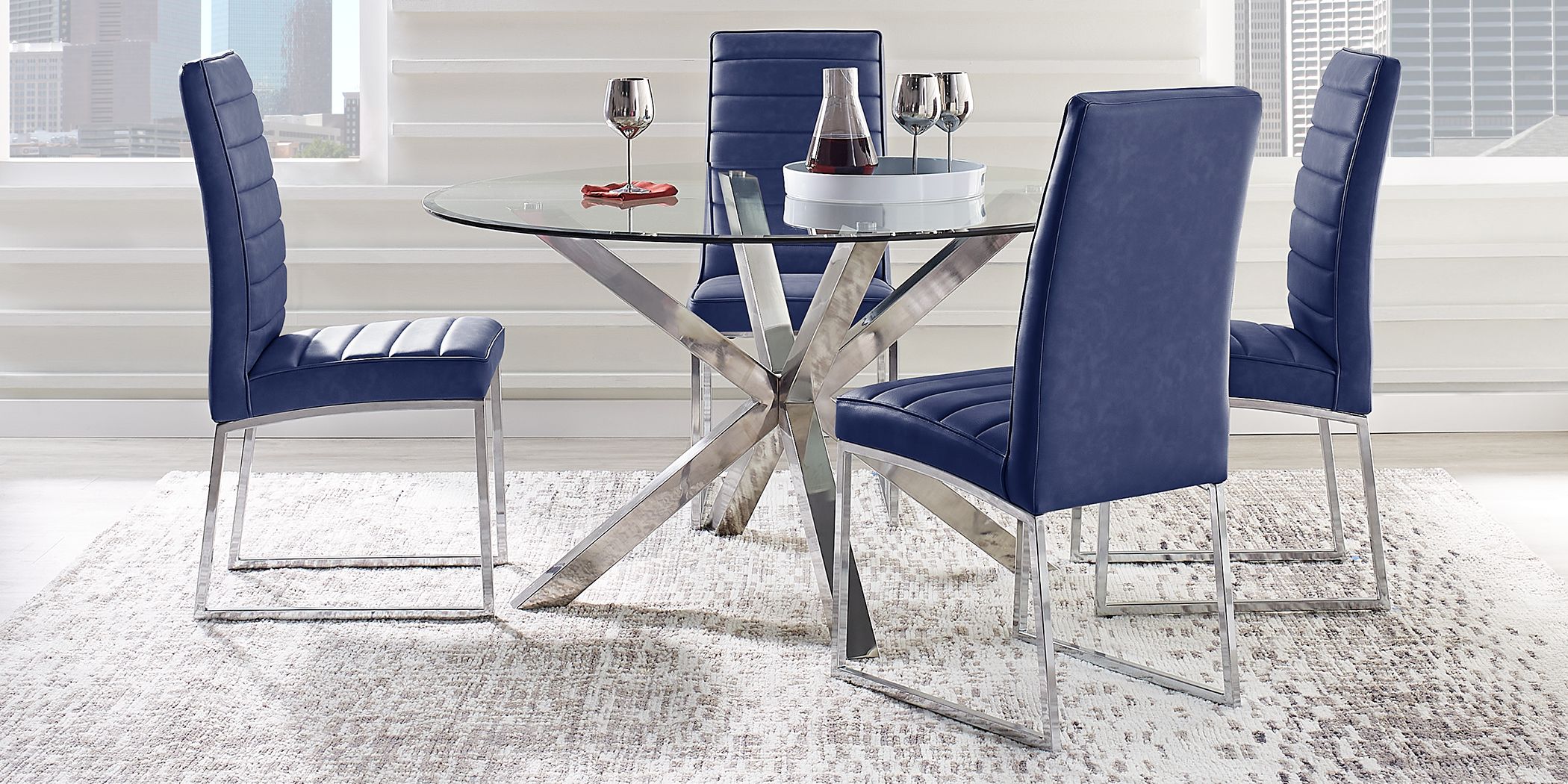 Blue Dining Room Table Sets from assets.roomstogo.com Fabulous dining room in captivating royal blue [design: Standard box (5494 sets) released: Shop our selection of dining room furniture, and put together your own dining room sets! On this page you can set your preferences with regards to how we will process your data and share it with other organisations. Formal dining room featuring elegant walls and chairs set on a large rug covering the tiles flooring and is lighted by a glamorous chandelier. Most relevant most popular alphabetical price: Lefever rubber solid wood dining table : Shop for dining room sets at appliancesconnection.com.